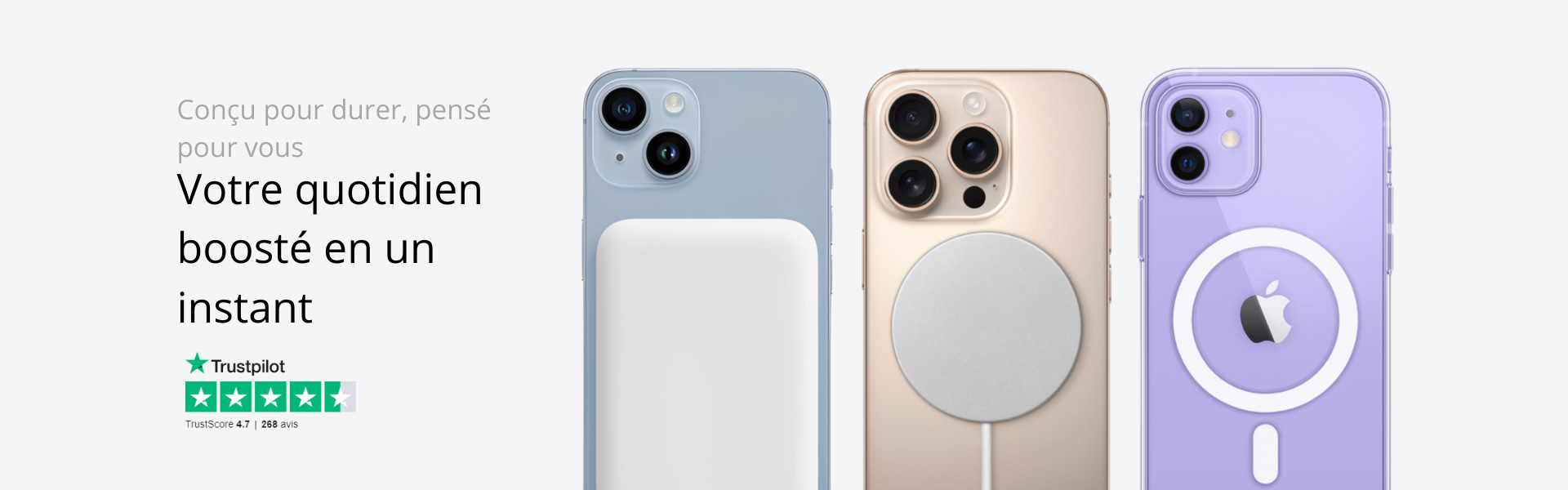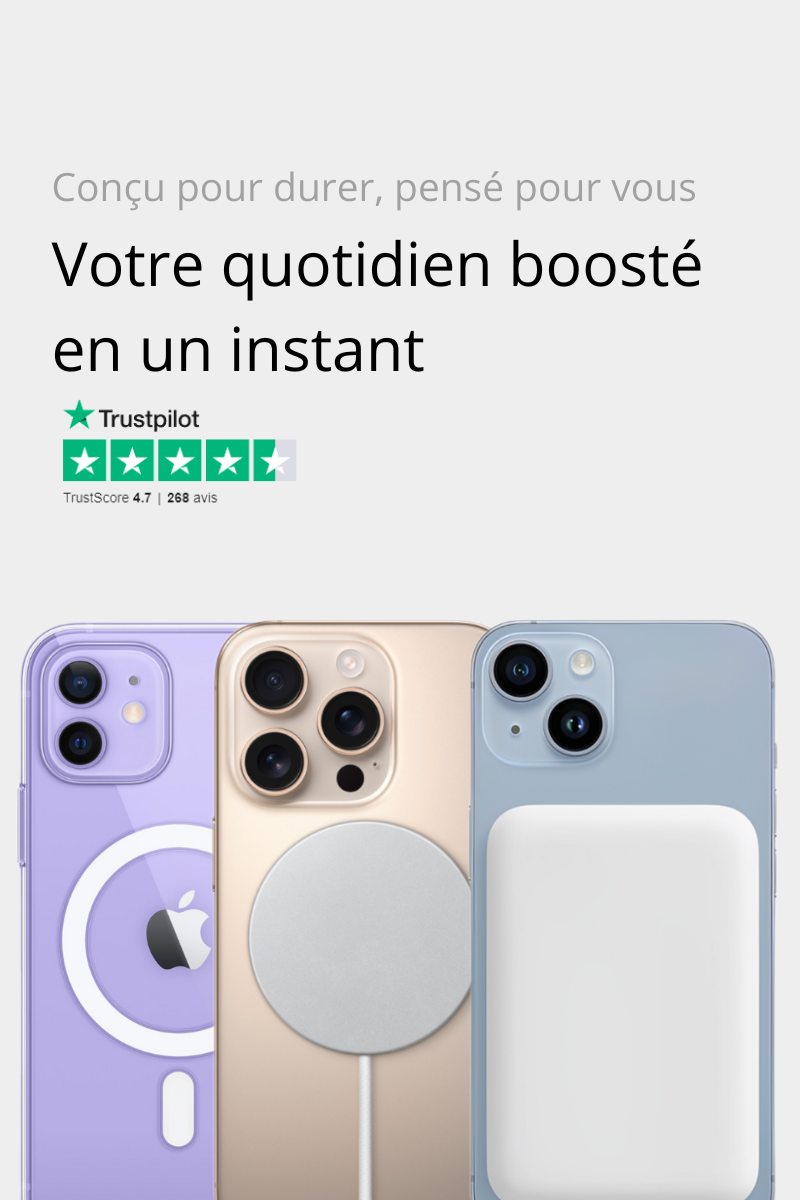 Simplifiez votre quotidien avec nos accessoires magnétiques : coque, chargeur et batterie externe conçus pour une utilisation rapide, pratique et sans fil
